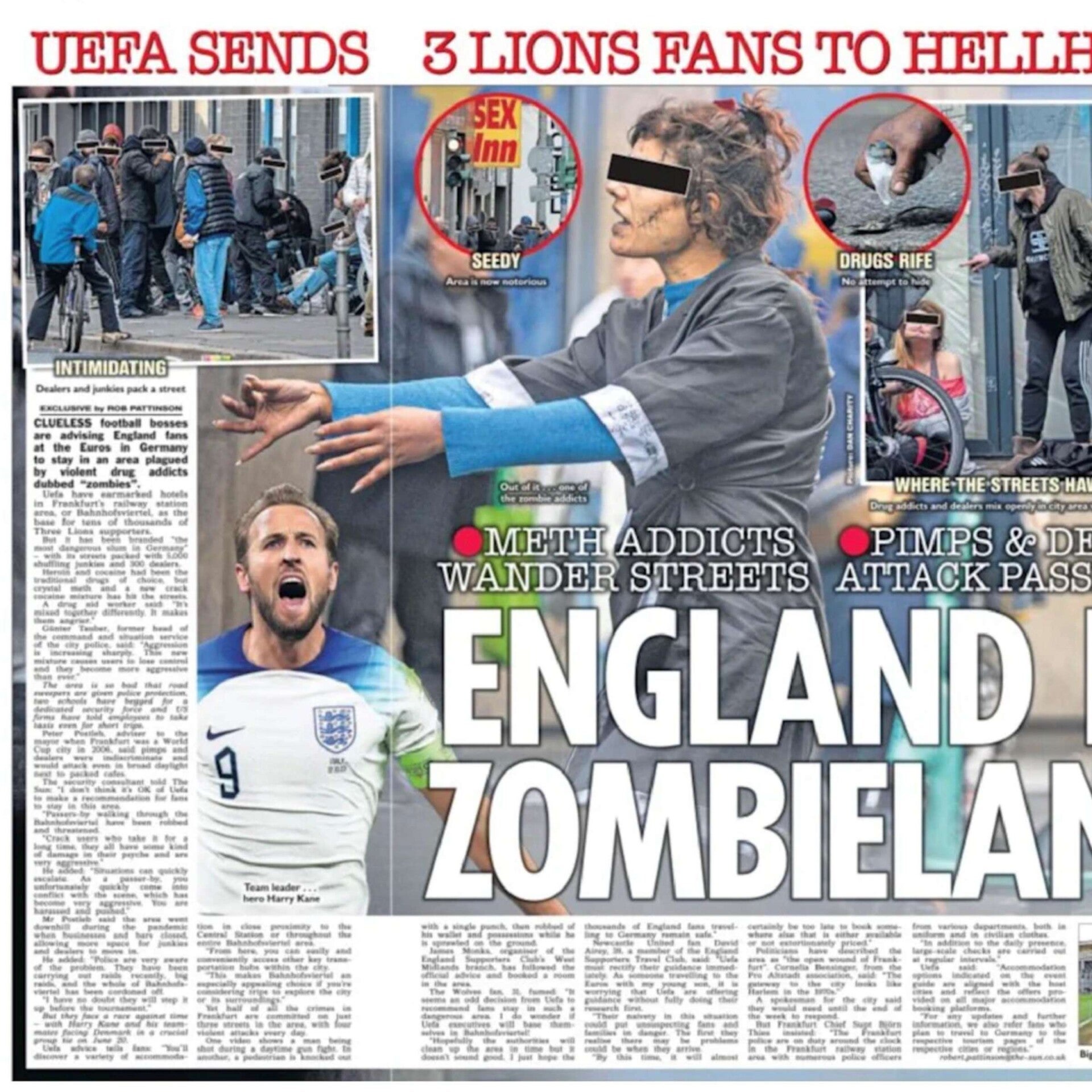 Im Juli 2024 war Frankfurt Ausrichtungsort der Fußballeuropameisterschaft. Insbesondere britische Zeitungen warnten ihre Fans vor dem Frankfurter Bahnhofsviertel. Sogar die hartgesottenen britischen Hooligans sollten einen Bogen um das sogenannte "Zombieland" machen. Ein gigantischer Imageschaden für Frankfurt.